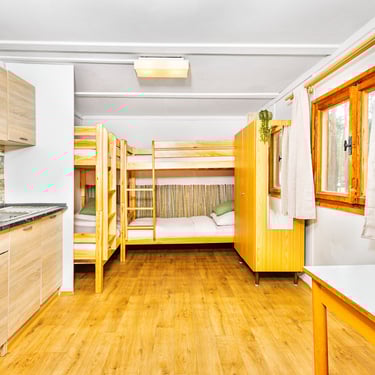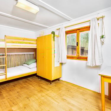 lednička, elektrický vařič, varná konvice, veškeré nádobí